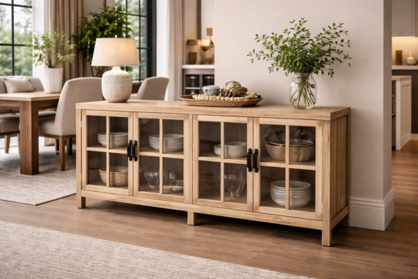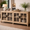 Natural Recycled Elm Sideboard with Glass Doors