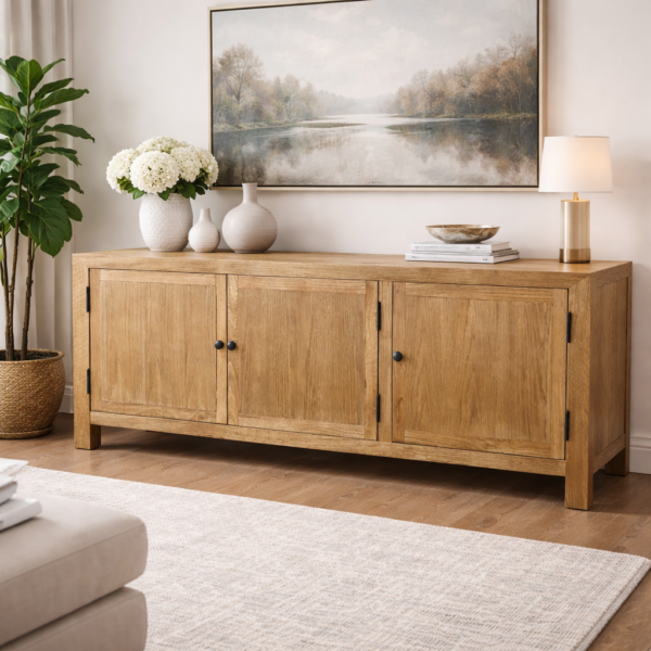 Oak TV Unit 3-Doors Shelf Inside Optional cable holes on request 160x40x58(H) cm Code YY016