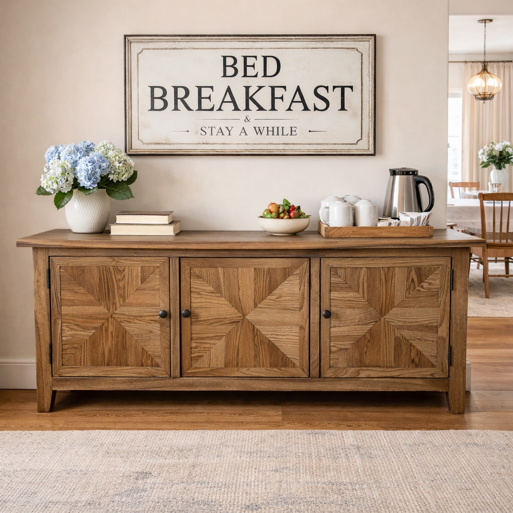 Recycled Elm Parquetry TV Unit 3-Doors Parquetry Pattern on Top Shelf Inside Optional cable holes on request 160x40x58(H) cm Code PX016